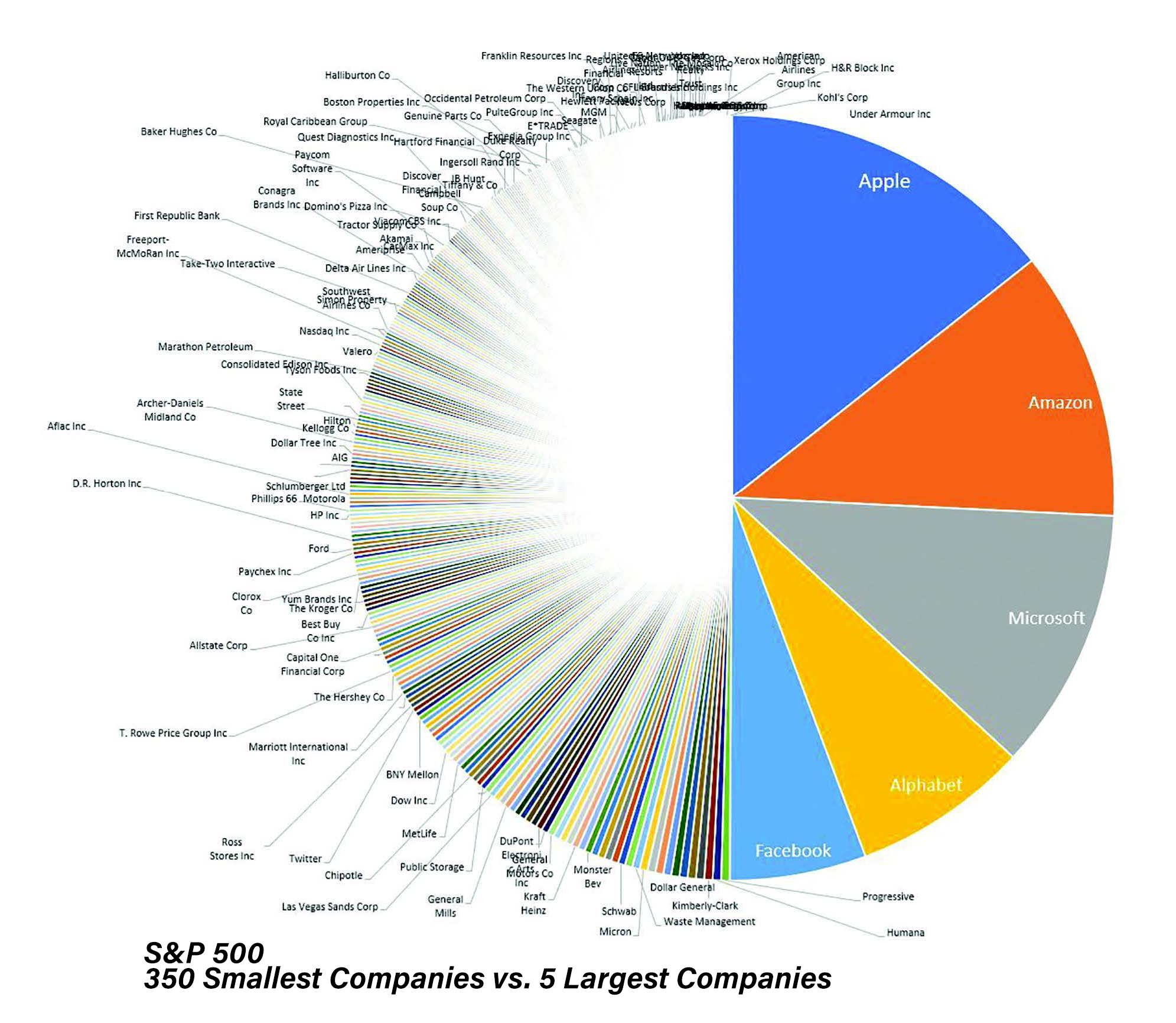 The top five companies now represent approximately 25 percent of the total market capitalization of the S&P 500, which means that approximately 495 companies comprise the other 75 percent. If diversification is a key to managing risk, a deeper look is crucial.